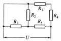 如图所示,电路中每个电阻的阻值都相同,额定功率也相同.当电压U升高时,先烧坏的电阻应是( ).