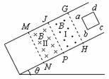 在如图所示的倾角为θ的光滑斜面上,存在着两个磁感应强度大小为B的匀强磁场,区域I的磁场方向垂直斜面向上,区域Ⅱ的磁场方向垂直斜面向下,磁场的宽度均为L,一个质量为m、电阻为R、边长也为L的正方形导线框,由静止开始沿斜面下滑,当ab边刚越过GH进入磁场Ⅰ区时,恰好以速度 v1做匀速直线运动;当ab边下滑到JP与MN的中间位置时,线框又恰好以速度v2做匀速直线运动,从ab进入GH到MN与JP的中间位置的过程中,线框的动能变化量为△Ek,重力对线框做功大小为W1,安培力对线框做功大小为W2,下列说法中正确的有
