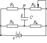 在如图所示的电路中,电源内阻不计,R1∶R2=1∶3,R3∶R4=3∶1,当R2的滑动片P从最右端向最左端滑动的过程中,导线EF上的电流方向是( )