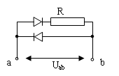 电阻R与两个完全相同的二极管连成如图电路,ab端加上电压Uab。当Uab=10V时, a点的电流为0.01A;当Uab=-0.2V时,a点的电流也为0.01A,电阻R的阻值为(