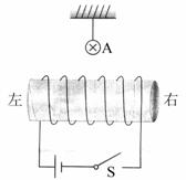 如图所示,均匀绕制的螺线管水平放置,在其正上方附近用绝缘线水平吊起通电直导线A,导线A与螺线管垂直。已知导线A中的电流方向垂直于纸面向里。开关S闭合后,导线A受到通电螺线管磁场的作用力的方向是( )