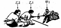 000N,同学甲1和乙1对绳子的水平拉力均为500 N.绳上的A、B两点分别位于甲1和乙1、乙1和乙2之间.不考虑绳子的质量.下面说法正确的是( )