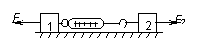 12.质量均为5 Kg的物块l、2放在光滑水平面上并用轻质弹簧相连,如图所示,今对物块1、2分别施以方向相反的水平力F1、F2,且F1=20 N、 F2=10 N,则弹簧称的示数为: ( )