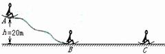 7.如图所示,某人乘雪橇从雪坡A点滑至B点,接着沿水平地面滑至C点停止。人与雪橇的总质量为70kg,A点距地面的高度为20m,人与雪橇在BC段所受阻力恒定。图表中记录了人与雪橇运动过程中的有关数据。求:(取g=10m/s2)