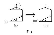 本题用常规方法求解较难。为此,我们将图1(a)情形等效变换成图1(b)情形。即用g′代替g,将吊车由加速上升变为静止。则