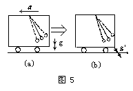 用等效重力加速度g′代替g,将车厢变换成静止,如图5(b)。