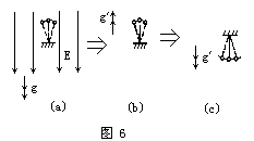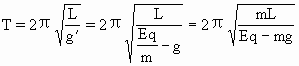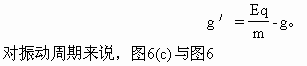例5 如图6(a),均匀电场场强为E,方向竖直向下。现将一摆长为L,摆球带电量为-q的单摆悬于其内。则它的微振动周期多大?(已知Eq>mg)