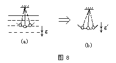 例7 如图8(a),由密度为ρ的实心金属小球做成的单摆,在空气中的振动周期为T0。若把小球完全浸入水中而成为水下单摆,则它的振动周期将变为多大?