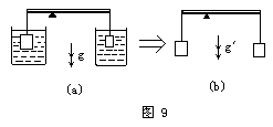 例8 如图9(a)。不等臂天平两端挂着铁块而处于平衡。当将两铁块都浸没到水中后,杠杆是否仍能平衡?