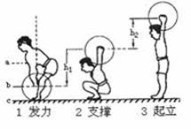 (1)从发力到支撑这个过程中杠铃实际上升的高度h=?