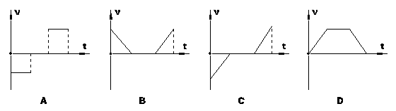 3、一列火车匀减速进站,停靠一段时间后又匀加速(同方向)出站。在如图所示的四个v-t图象中,正确描述了火车运动情况的是( )