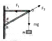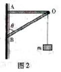 如图2所示,质量为m的物体悬挂在轻质的支架上,斜梁OB与竖直方向的夹角为θ。设水平横梁OA和斜梁OB作用于O点的弹力分别为F1和F2。以下结果正确的是