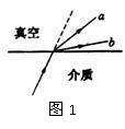 a、b两种色光以相同的入射角从某种介质射向真空,光路如图1所示,则以下描述错误的是( ).