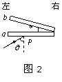 如图2,a和b都是厚度均匀的平玻璃板,它们之间的夹角为φ,一细光束以入射角θ从P点射入, θ > φ已知此光束由红光和蓝光组成,则当光束透过b板后,( )