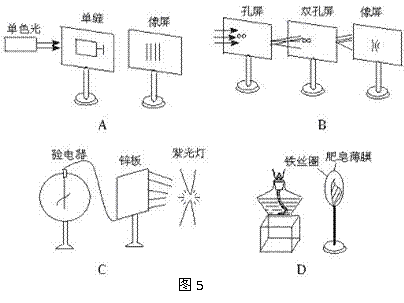 8.人类对光的本性认识的过程中先后进行了一系列实验,如图5所示的四个示意图所表示的实验不能说明光具有波动性的是: ( )