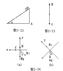 [正确解答]分别以A,B物体为研究对象。A,B物体受力分别如图2-24a,2-24b。根据牛顿第二定律列运动方程,A物体静止,加速度为零。