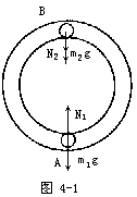 [正确解答]首先画出小球运动达到最高点和最低点的受力图,如图4-1所示。A球在圆管最低点必受向上弹力N1,此时两球对圆管的合力为零,m2必受圆管向下的弹力N2,且N1=N2。 据牛顿第二定律A球在圆管的最低点有: