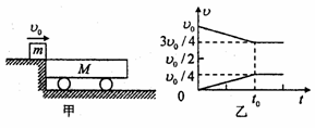 如图甲所示,光滑水平面上停放着一辆上表面粗糙的平板车,平板车质量为M.一质量为m的铁块,以水平初速度v0滑到小车上,两物体开始运动,它们的速度随时间变化的图象如图乙所示(t0是滑块在车上运动的时间),则可以断定
