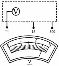 (1)(8分)选用量程为3V,内阻为2.0 kΩ的电压表改装成量程为15V和300V的双量程电压表,应给该电压表________联分压电阻(填“串”或“并” )。请补充画完虚线框中改装后的双量程电压表电路图。选用的分压电阻的阻值为______kΩ 和_______kΩ。若用改装好的电压表侧量电压时,表盘示数如图所示,则测得的电压为________V。