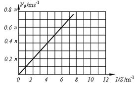 (3)如果以纵坐标表示雾滴速度v0、横坐标表示雾滴距标志线距离的倒数1/S,画出v0-1/S图线,如图3所示,则可知转台转动的周期为T= ▲ s
