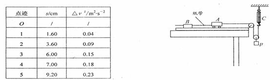 (Ⅱ).某同学用如图所示的实验装置探究小车动能变化与合外力对它所做功的关系。图中A为小车,连接在小车后面的纸带穿过打点计时器B的限位孔,它们均置于水平放置的一端带有定滑轮的足够长的木板上,C为弹簧测力计,不计绳与滑轮的摩擦。实验时,先接通电源再松开小车,打点计时器在纸带上打下一系列点。