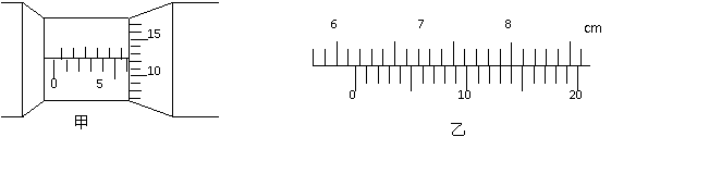(1)用螺旋测微器测圆柱体的直径时,示数如图甲所示,此示数为 m,用分度为0.05mm的游标卡尺测量某物体的厚度时,示数如图乙所示,此示数为 m。