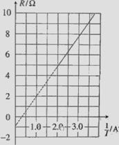 (4)某研究性学习小组利用右图所示电路测量电池组的电动势E和内阻r。根据实验数据绘出如下图所示的R-1/I图线,其中R为电阻箱读数,I为电流表读数,由此可以得到E= V,r= Ω。