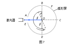 (1)如图7所示,半圆形玻璃砖按图中实线位置放置,直边与BD重合。一束激光沿着半圆形玻璃砖的半径从圆弧面垂直BD射到圆心O点上。使玻璃砖绕O点逆时针缓慢地转过角度θ(θ<90°),观察到折射光斑和反射光斑在弧形屏上移动。