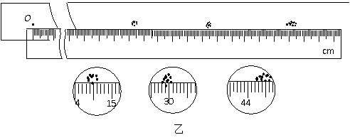 用如图甲所示的装置,来验证碰撞过程中的动量守恒。图中PQ是斜槽,QR为水平槽。O点是水平槽末端R在记录纸上的垂直投影点,A、B两球的质量之比mA:mB=3:1。先使A球从斜槽上固定位置G由静止释放,在水平地面的记录纸上留下落点痕迹,重复10次,得到10个落点。再把B球放在水平槽上的末端R处,让A球仍从位置G由静止释放,与B球碰撞,碰后A、B球分别在记录纸上留下各自的落点痕迹,重复10次。A、B两球在记录纸上留下的落点痕迹如图乙所示,其中米尺的零点与O点对齐。