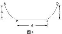 如图4所示,ABCD是一个盆式容器,盆内侧壁与盆底BC的连接处都是一段与BC相切的圆弧,B、C为水平的,其距离d=0.50 m。盆边缘的高度为h=0.30 m。在A处放一个质量为m的小物块并让其从静止出发下滑。已知盆内侧壁是光滑的,而盆底BC面与小物块间的动摩擦因数为μ=0.10。小物块在盆内来回滑动,最后停下来,则停的地点到B的距离为( )
