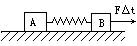 1、如图所示,在一个足够大的光滑平面内有A、B两个质量相同的木块,中间用轻质弹簧相连 .今对B施以水平冲量F△t(△t极短).此后A、B的情况是 ( )