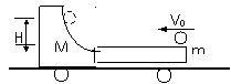 *30、如图,有光滑圆弧轨道的小车静止在光滑水平面上,其质量为M。一质量为m的小球以水平速度V0沿轨道的水平部分冲上小车,求小球沿圆弧形轨道上升到最大高度的过程中圆弧形轨道对小球的弹力所做的功。