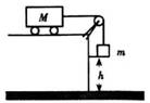 如图所示,在光滑水平桌面上有一质量为M的小车,小车跟绳一端相连,绳子另一端通过滑轮吊一个质量为m的砖码,则当砝码着地的瞬间(小车未离开桌子)小车的速度大小为______在这过程中,绳的拉力对小车所做的功为________。