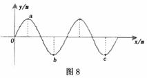 19.图8是一列简谐横波在某时刻的波形图,已知图中b位置的质点起振比a位置的质点晚0.5s,b和c之间的距离是5cm,则此列波的波长和频率应分别为