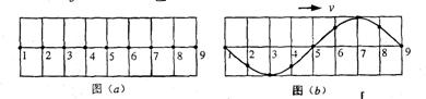 25.在均匀介质中选取平衡位置在同一直线上的9个质点,相邻两质点的距离均为L,如图(a)所示.一列横波沿该直线向右传播,t=0时到达质点1,质点1开始向下运动,经过时间Δt第一次出现如图(b)所示的波形.则该波的 ( )