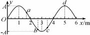 一列简谐横波沿x轴正方向传播,某时刻(t=0)其波形如图12所示,a、b、c、d是四个质点,振幅为A。下列说法中正确的是 ( )