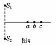 如图4所示,S1、S2是振动情况完全相同的两个机械波波源,振幅为A,a、b、c三点分别位于S1、S2连线的中垂线上,且ab=bc.某时刻a是两列波的波峰相遇点,c是两列波的波谷相遇点( )