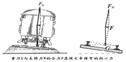 (原创)例3. 火车在平直轨道上匀速行驶时,所受的合力等于0,那么当火车转弯时,我们说它做圆周运动,那么是什么力提供火车的向心力呢?