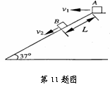 如图所示.一足够长的固定斜面与水平面的夹角为370,物体A以初速度v1从斜面顶端水平抛出,物体B在斜面上距顶端L=15m处同时以速度v2沿斜面向下匀速运动,经历时间t,物体A和物体B在斜面上相遇,则下列各组速度和时间中不满足条件的是(sin370=0.6,cos370=0.8,g=10 m/s2)( )