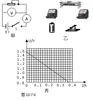 例1. 某同学采用如图10-7-6甲所示的电路测定电源电动势和内电阻。已知干电池的电动势约为1.5V,内阻约为1Ω;电压表(0-3V,3kΩ)、电流表(0-0.6A,1.0Ω)、滑动变阻器有R1(10Ω,2A)和R2(100Ω,0.1A)各一只.