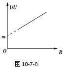 与1/R的关系图象(该图象为一直线)如图10-7-8所示。由图象可得到直线在纵轴上的截距为m,直线的斜率为k,试根据以上信息