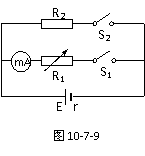 2、用一只电流表和一只电阻箱测量,如图10-7-4