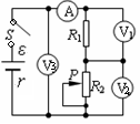 中,闭合电键S,当滑动变阻器的滑动触头P 向下滑动时,四个理想电表的示数都发生变化,电表的示数分别用I、U1、U2和U3表示,电表示数变化量的大小分别用ΔI、ΔU1、ΔU2和ΔU3表示.下列比值正确的是 ( )