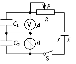 如图所示,电路中电源的电动势为E,内阻为r,A为电压表,内阻为10kΩ,B为静电计;两个电容器的电容分别为C1和C2,将电键S合上一段时间后,下列说法中正确的是( )