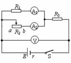 当R2的滑动触点在a端时合上开关S,此时三个电表A1、A2和V