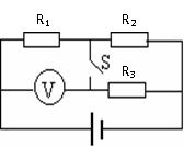 =3Ω,电压表为理想电表,当开关S断开时,电压表示数为5