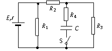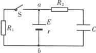 源电动势E=10V,内阻r=2Ω,电阻R1=8Ω,R2=2Ω,电容器的电容C=20μF。开关S原来断开,后将它闭合。求: