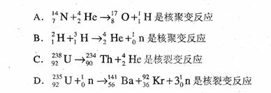 A.重核裂变放出能量,轻核聚变也放出能量,铀核发生裂变时的一种核反应是 ![]()