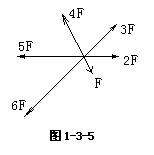 变式训练1:六个共点力的大小分别为F、2F、3F、4F、5F、6F,相邻两个力之间夹角均为60º,如图1-3-5所示,则它们的合力大小是____,方向____。