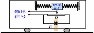 例3.加速度计是测定物体加速度的仪器,它已成为导弹、飞机、潜艇后宇宙飞船制导系统的信息源。如图为应变式加速度计示意图,当系统加速时,加速度计中的敏感元件也处于加速状态,敏感元件由弹簧连接并架在光滑支架上,支架与待测系统固定在一起,敏感元件下端的滑动臂可在滑动变阻器R上自由滑动,当系统加速运动时,敏感元件发生位移,并转化为电信号输出,已知:敏感元件的质量为m,两弹簧的劲度系数为k,电源的电动势为E,内电阻不计,滑动变阻器的总电阻为R,有效长度为L,静态时输出电压为U0。试求加速度a与输出电压U的关系式。